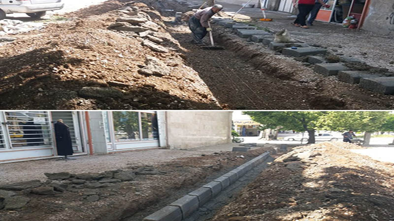 بیس ریزی و ترمیم پیاده رو در شهریار شهر میدان مرتضی علی