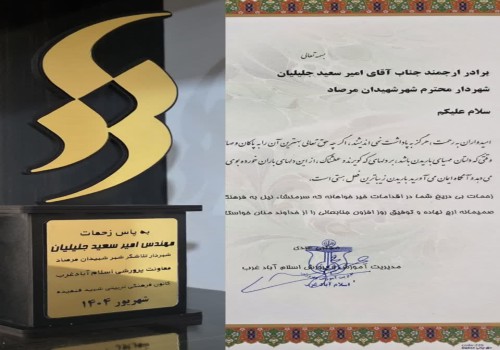 📌 آموزش و پرورش اسلام آباد غرب، از امیر سعید جلیلیان شهردار پرتلاش، به پاس زحمات و خدمات ایشان در حوزه ی فرهنگی و تعامل سازنده با مجموعه ی آموزش و پرورش شهرستان، با اهدای لوح و تندیس، تجلیل کرد.